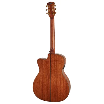 در بخش پشت و کنارهها از چوب Pau Ferro استفاده شده که علاوه بر استحکام بالا، زیبایی طبیعی و تُن متعادل آن، صدایی شفاف و موزون با بیس کنترلشده و تریبل درخشان ایجاد میکند. طراحی OM Cutaway نهتنها راحتی دسترسی به فرتهای بالا را فراهم میکند، بلکه تعادل بین حجم صدا و داینامیک را نیز حفظ مینماید.