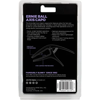 خانه » لوازم جانبی » لوازم جانبی گیتار » کاپو گیتار » Ernie ball Axis Universal Capo – Gold satin – 9605