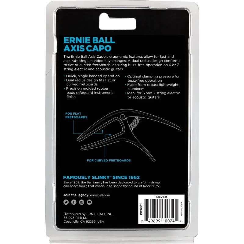 خانه » لوازم جانبی » لوازم جانبی گیتار » کاپو گیتار » Ernie ball Axis Universal Capo – Silver – 9601