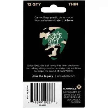 خانه » لوازم جانبی » لوازم جانبی گیتار » پیک گیتار » Ernie ball Plektren Celluloid Camo Thin – Pack12 – 9221