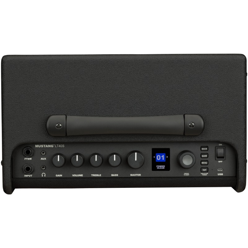Mustang LT40S قدرت گرفته از موتور Modeling پیشرفته Fender است، که به صورت دقیق صدای بیش از 20 آمپلیفایر مدرن و کلاسیک را شبیه سازی می کند. LT40S شامل طیف گستردهای از effect های داخلی می باشد؛با chorus، overdrive، distortion، delay ،phaser، flanger و reverb در این آمپ میتوانید تُن صدا را جوری شکل دهید که با هر استایلی همخوانی داشته باشد. با 60 Preset میتوانید بی معطلی شروع به نواختن کنید و حتی صداهای مورد علاقه خودتان را save کنید. کنترل های فیزیکی برای Bass ،Treble، Gain، Volume و Master، بهمراه central encoder داخلی و مانیتور رنگی 1.8 اینچی تغییر تُن صدا را ساده و سریع میکند. از تُن های Clean تا Crunch گرم و Drive، تمامی صداها الهام گرفته شده از آمپلیفایرهای معروف Fender مانند ’59 Bassman و Super Champ میباشند، تا به شما عمق واقعی صدای آنالوگ را با دیزاین دیجیتال ارائه دهد.