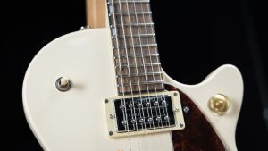 Gretsch G2210 Streamliner Junior Jet Club Vintage White با ظاهر مینیمال و فرم کلاسیک، یکی از خوشساختترین گیتارهای الکتریک در رده قیمتی اقتصادی بهشمار میآید. این مدل با رنگ Vintage White، فینیش براق و طراحی ساده و شیک، طراحی گیتار دهههای گذشته را با حالوهوای مدرن تلفیق کرده است. سختافزار نیکل و هداستاک با آرم Gretsch، ظاهر کلی گیتار را کامل میکند. ابعاد جمعوجور بدنه و طراحی سبک آن، این گیتار را برای اجراهای طولانی یا تمرین در استودیو کاملاً راحت و کاربردی کرده است.