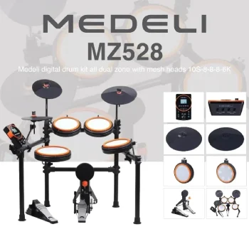 پتانسیل نوازندگی خود را با کیت درام دیجیتال Medeli MZ528 ارتقا دهید. این ساز همهکاره و مقرونبهصرفه، برای نوازندگی در هر سن و سطح مهارتی کاملاً مناسب است. با طراحی هد تماماً مشبک، یک تجربه واقعگرایانه و حرفهای از درام در اختیار شما خواهد بود. همراه با ۴ پد مشبک و ۳ پد سنج، درام دیجیتال Medeli MZ528 طیف وسیعی از صداهای درام و افکتهای کوبهای به شما ارائه میدهد که برای نواختن در سبکهای مختلف یک گزینه ایدهآل است. درام Medeli MZ528 همچنین دارای یک ماژول صدای داخلی و اتصال USB/MIDI است؛ بنابراین میتوانید بهراحتی قطعههایی که مینوازید را ضبط کنید.
