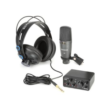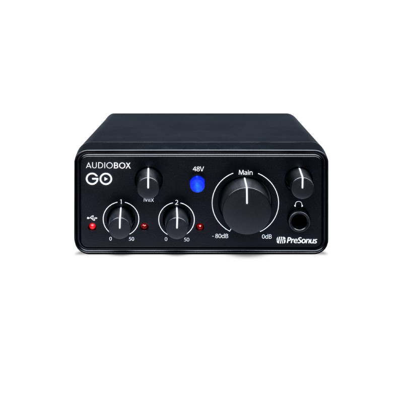 یکی از سخت افزارهای عالی و درجه یک این پکیج، کارت صدای AudioBox Go آن میباشد که کیفیت صدایی بینظیر را در اختیار شما قرار میدهد. این کارت صدا با پورت USB به سیستم شما وصل میشود و دو کانال Mic/Instrument خواهید داشت که برای اتصال میکروفون و ساز مناسباند. میکروفونهای کاندنسر از فانتوم پاور به عنوان منبع تغذیه استفاده میکنند. این کارت صدا فانتوم پاور 48 ولت مناسب این نوع میکروفون را دارد و همچنین پری امپ آن XMAX-L PreSonus میباشد که کیفیت صدای بالایی را تضمین میکند. یک جفت خروجی مانیتورینگ و یک خروجی هدفون از دیگر ویژگیهای این کارت صدا هستند. به همراه این کارت صدا، اشتراک یکساله Studio One Prime نیز عرضه خواهد شد که خیال شما را از بابت نرم افزار DAW راحت میکند.