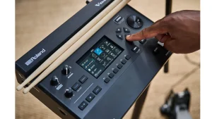 در دل این درامز الکترونیک Module صدای VCT31 قرار دارد، همان موتور قدرتمندی که در مدل های بالارده Roland همانند TD50 قرار گرفته است. این ماژول دارای بیش از 1000 صدای ساز و 200 کیت آماده درامز برای نواختن است که طیف وسیعی از صداها را در اختیار شما قرار می دهد. این سیستم با حساسیت بالا به شدت ضربات نوازنده، صدایی طبیعی و رسا فراهم می کند، Mesh pad های چند لایه این ساز به شما Rebound دقیق ضربات را می دهد. پد های Snare این درام ست از تکنیک های Cross-stick پشتیبانی می کنند، در حالی که پد های Tom قابلیت Hot Spot Reduction دارند، که امکان دریافت داینامیک نرم بدون تغییر ولوم صدای ناگهانی را فراهم می کنند. هر Cymbal قابلیت Multi-zone sensitivity و choke functionality دارد، که به شما امکان نواختن با expression و کنترل کامل می دهد.